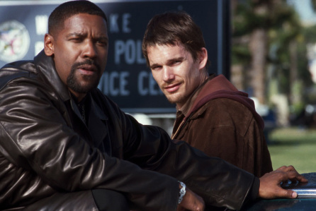 电影版《训练日》讲述了一位菜鸟警察(霍克扮演)在他上任的第一天和游走在法律边缘的侦探(华盛顿扮演)搭档缉拿毒贩的故事。这部犯罪剧情片最终也实至名归地为华盛顿赢得了最佳男演员的小金人一座。